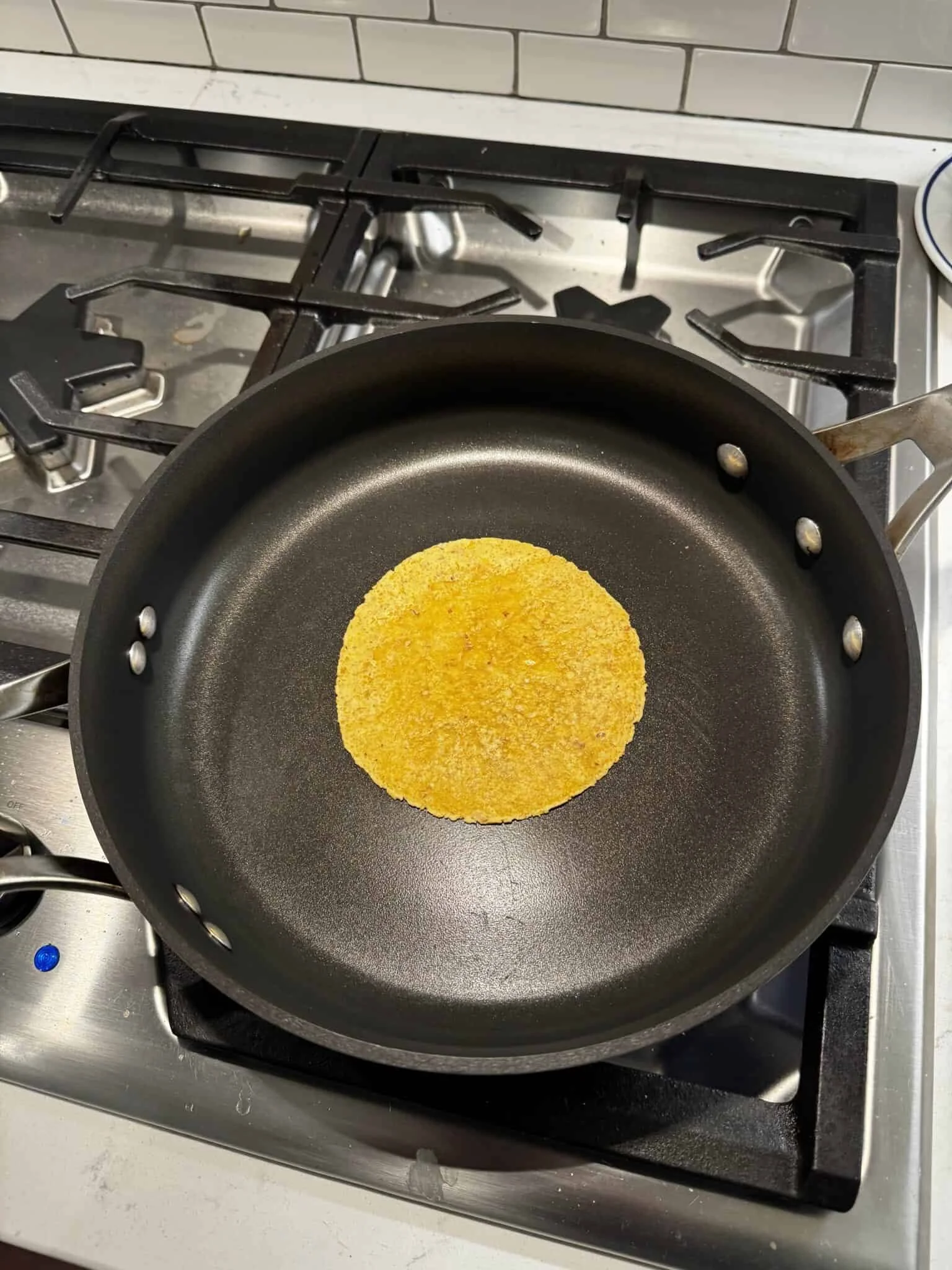 In a skillet over medium heat, lightly toast the corn tortillas on both sides (about 1 minute per side). If you are using a non-stick or cast iron pan, no oil is needed. If you are using a stainless steel or other cooking surface, you may need a quick spritz of non-stick spray. The tortillas should be lightly browned in some spots but still pliable. Wrap in Foil or Towel to keep warm.