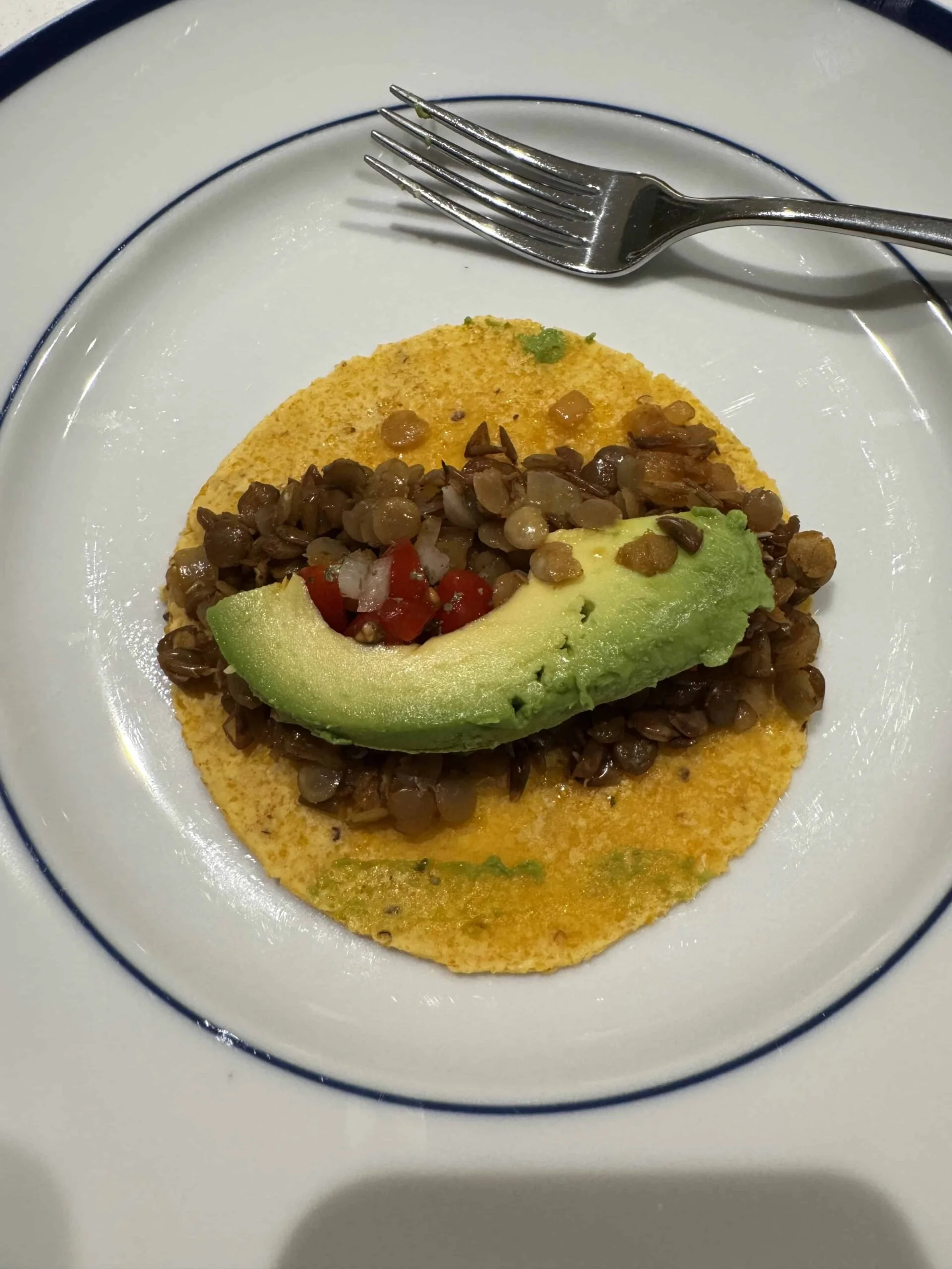 Build the tacos, using about 1/4 cup of seasoned lentils per taco, one slice of avocado, a small amount of pico de gallo, and optional sour cream. If you have cilantro left over from the pico de gallo, it can also be used to top the tacos.